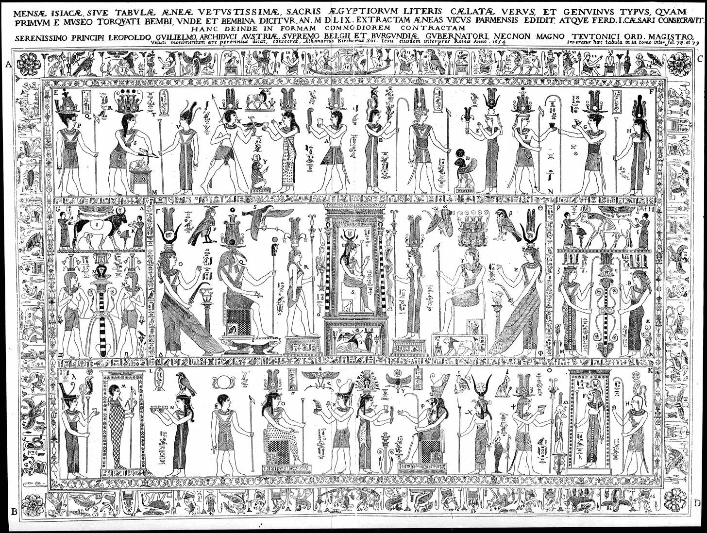 Sabemos hoje que, por erudito que fosse, Athanasius Kircher entendia tanto da língua egípcia quanto eu de matemática, ou seja, rigorosamente nada. A língua egípcia só foi decifrada no séc. XIX, por Champollion, quando se constatou que as imaginativas traduções de Kircher passam longe do verdadeiro significado dos hieróglifos que, pra começo de conversa, nem sequer são um alfabeto, como pensava o bom jesuíta.
